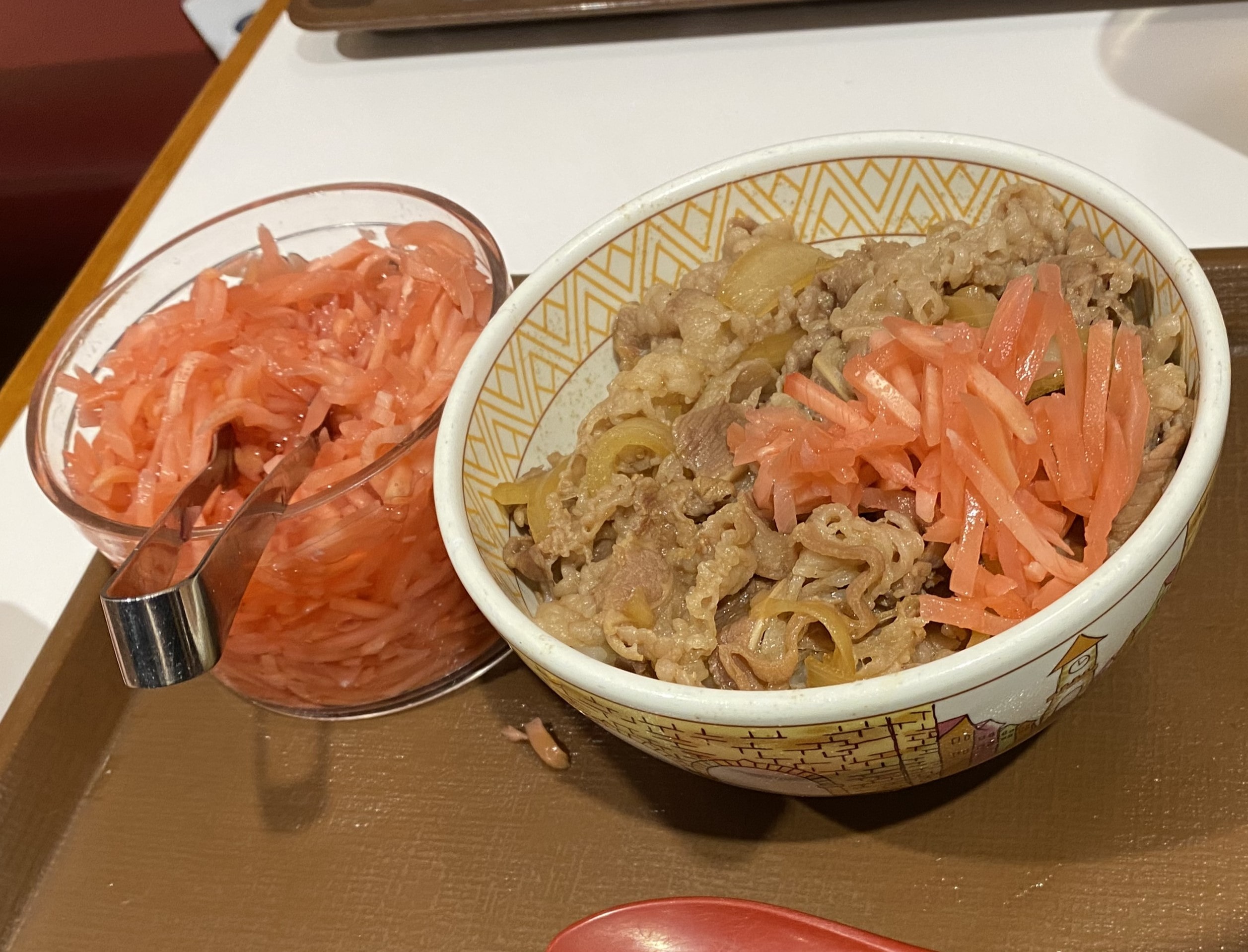 Adding pickled ginger to your beef bowl is a very smart choice.