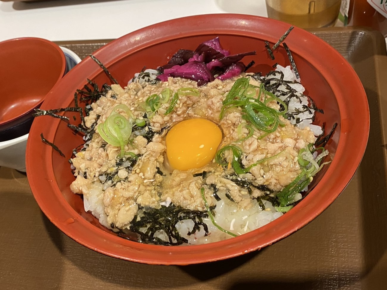 This has a savory and slightly sweet flavor, thanks to the seasoned ground chicken. The chicken is cooked with soy sauce, sugar, and sometimes mirin, giving it a rich umami taste with a hint of sweetness. The addition of scrambled eggs often brings a soft and mild contrast, while the rice underneath absorbs all the delicious flavors, creating a comforting and balanced dish.